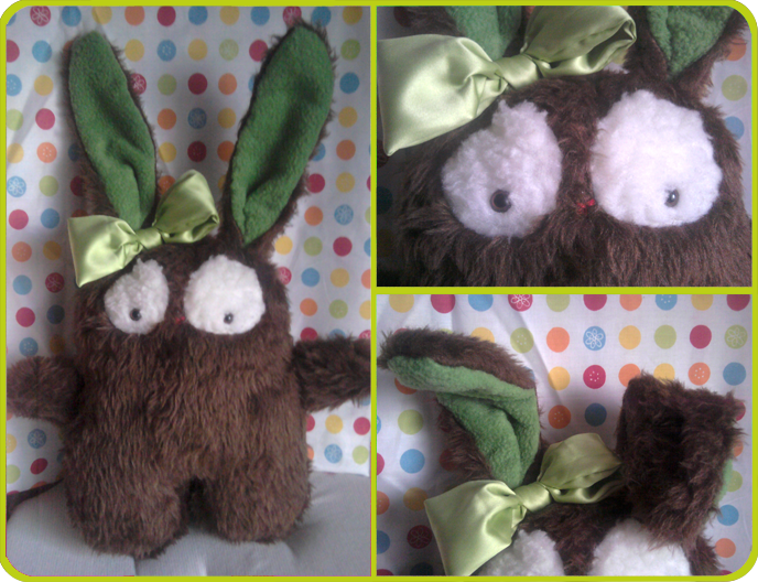 Le dernier de la photo qui n'est pas fiché : le petit lapin avec du tissu à pois, est reversible, il s'appelle Pickels.